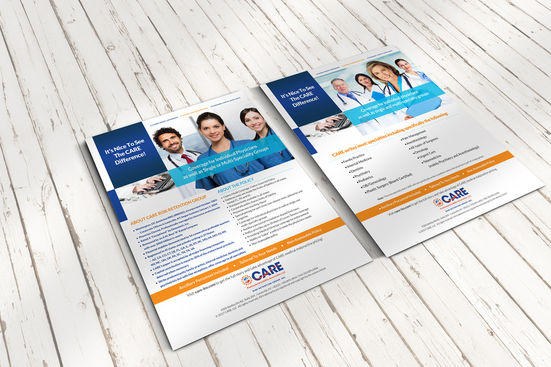 CARE Professional Liability Association is a physician malpractice insurance company that provides high quality low cost malpractice insurance to a wide range of medical practices throughout the East and MidWest US. As an Agent-based sales group, they were in need of a new branding effort and a full line of marketing materials. These included a full corporate identity program; a number of Power Point presentations; Data Sheets and flyers; banner ad program; website and other elements. The ID/Logo design encompassed the over-arching umbrella of services offered and the shield that malpractice insurance offers to the select physician in partnership with CARE. It was applied to all units of the marketing materials and succeeded in unifying the brand significantly. Since implemented they have a consistent growth pattern that will remain stable in the near future. The materials had a significant impact on the efforts of the sales Agents to increase that growth and has been extremely well received and successful.
